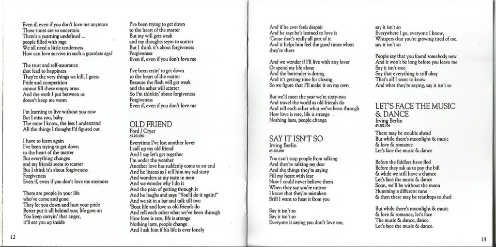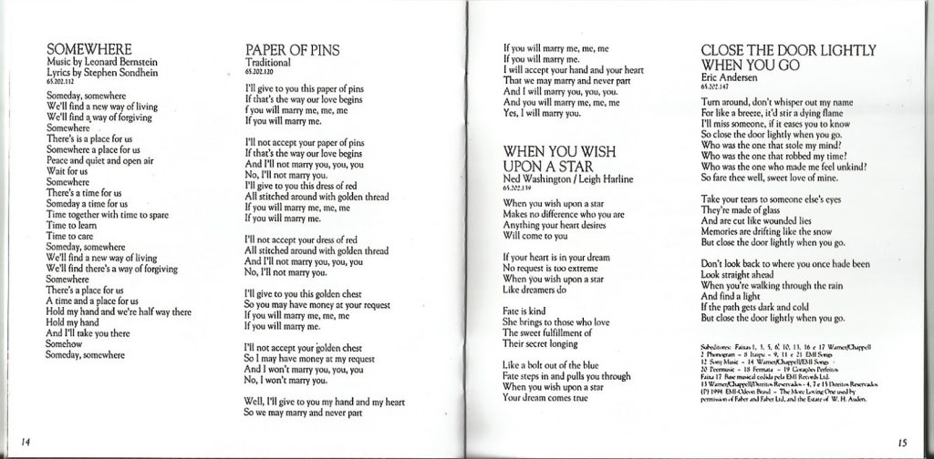 Outro destaque é a canção de Quincy Jones Miss Celia Blues, que integra a trilha sonora de A Cor Púrpura. Renato também incluiu sua homenagem ao Pinóquio da Disney com When You Wish Upon a Star, de Ned Washington e Leigh Harline. Vale notar ainda a curiosidade de ouvir uma música de Madonna em uma versão folk interpretada por Renato.