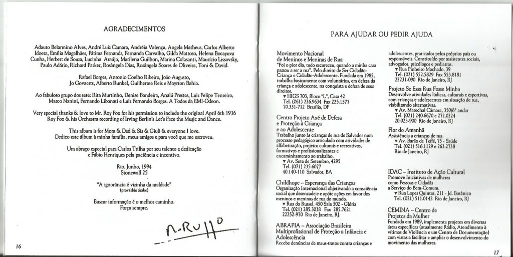 O encarte trazia informações de vinte e nove entidades sociais, entre elas o Grupo Gay da Bahia, o ISER, o Greenpeace, a Sociedade Viva Cazuza e a ABIA. Parte dos royalties foi doada à campanha de Betinho, Ação da Cidadania contra a Fome, a Miséria e pela Vida.
