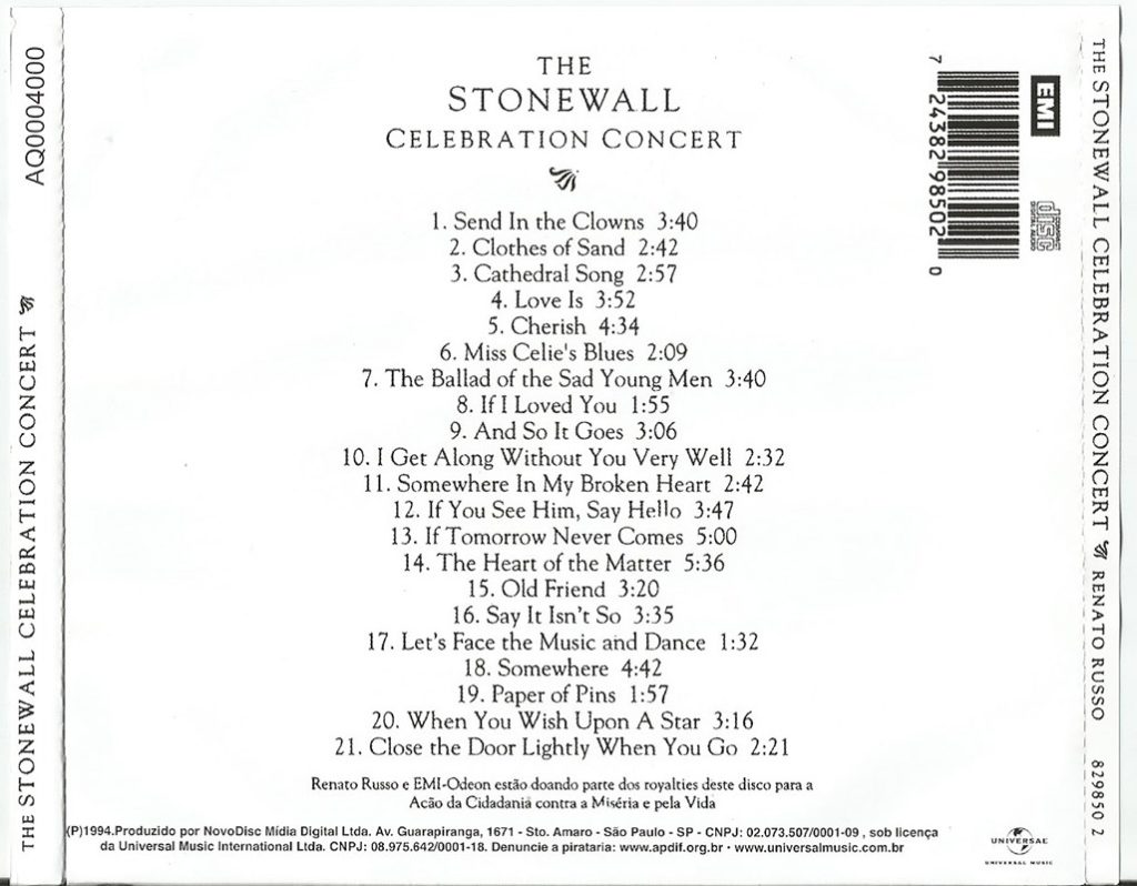 Em 1994 Renato Russo (27 de março de 1960 – 11 de outubro de 1996)  lançava seu primeiro disco solo totalmente em inglês. The Stonewall Celebration Concert era uma homenagem aos 25 anos da revolta de Stonewall, iniciada por Marsha P. Johnson e Sylvia Rivera.